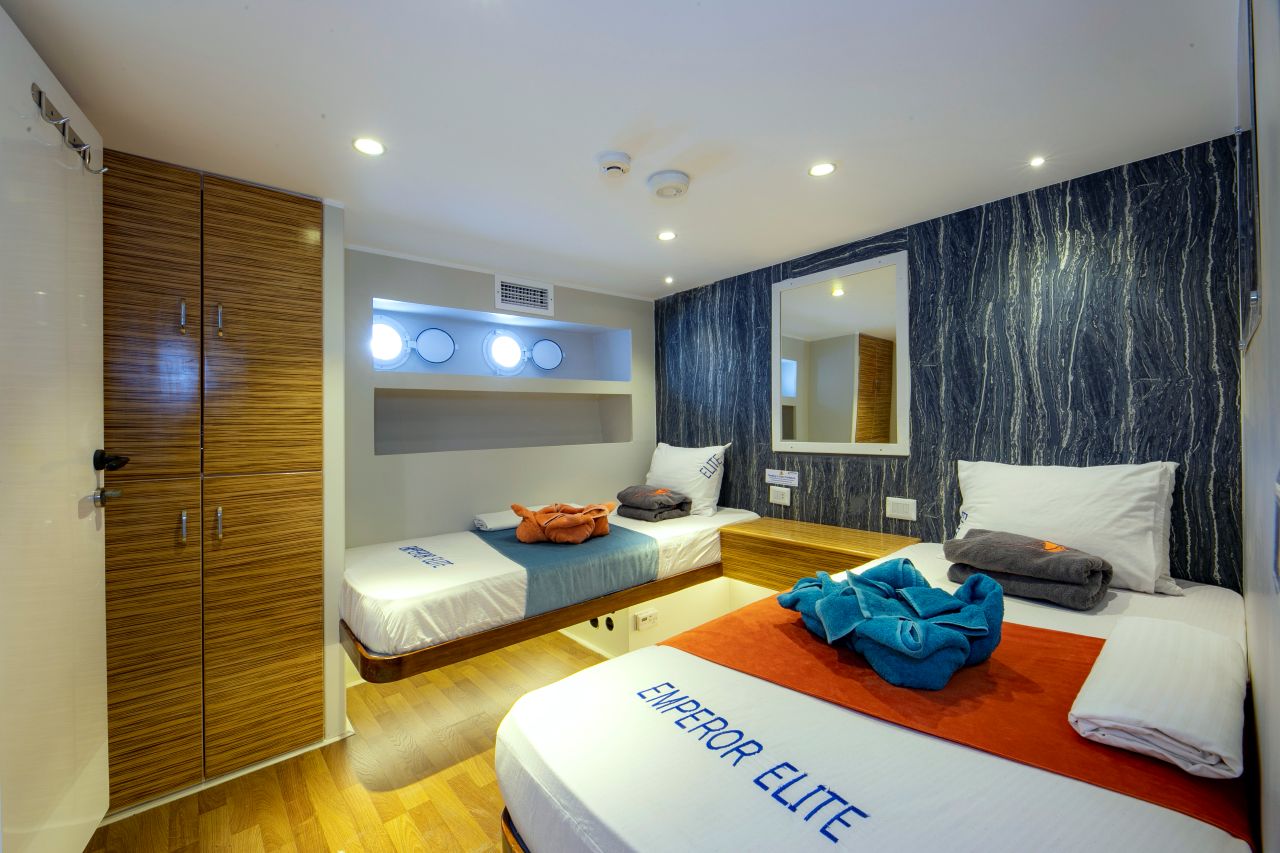 Die Emperor Elite beherbergt auf 38 Metern maximal 26 Gäste in verschiedenen Kabinen (alle mit Klimaanlage, sowie eigenem Bad mit Dusche) und wurde zum besten Tauchsafari-Schiff weltweit 2020 gewählt.