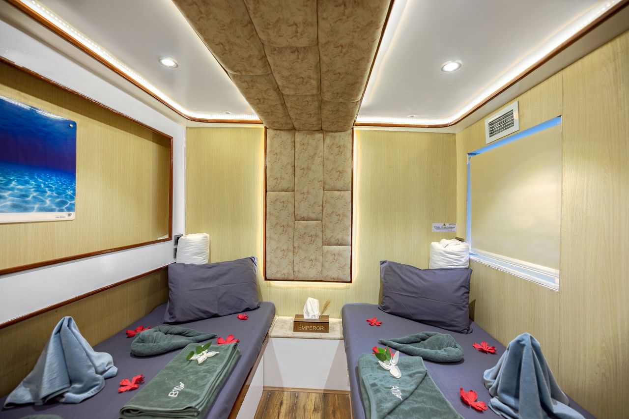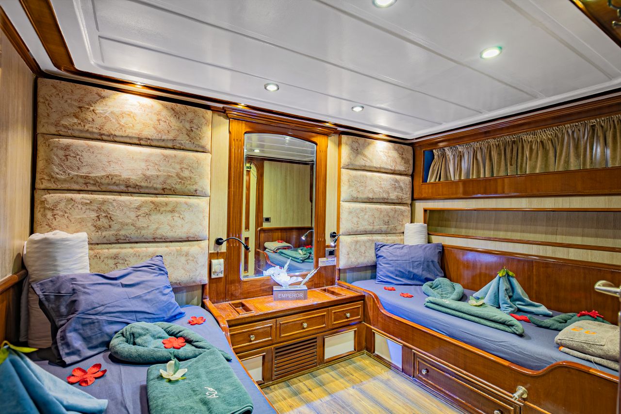 Die 37 Meter lange Emperor Superior hat 13 (sowohl Einzel- als auch Doppelbett-) Kabinen und Platz für bis zu 26 Personen. Alle Kabinen sind klimatisiert und verfügen über ein eigenes Bad.