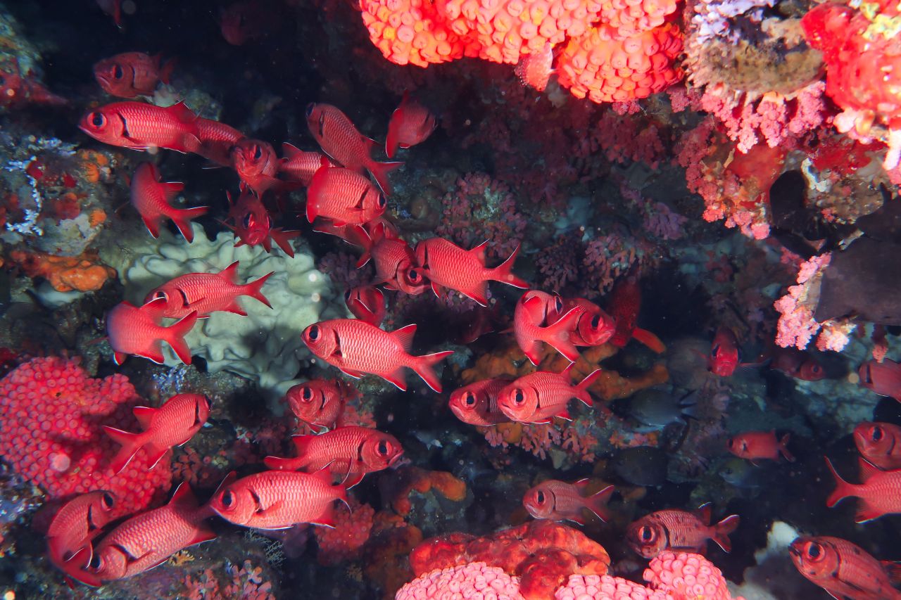 Tauchrevier: Die Nordmolukken garantieren einzigartige Taucherlebnisse, denn dieses Gebiet besitzt eine außergewöhnliche Artenvielfalt. Besonders spektakulär sind die Riffe selbst: Mit über 450 verschiedenen Korallenarten zählt Halmahera zu den artenreichsten Regionen der Welt. Bunte Korallengärten in leuchtenden Farben, und riesige intakte Steinkorallen bieten eindrucksvolle Fotomotive. Dazu kommt eine unglaubliche Vielfalt an Schwämmen – von gewaltigen Fass- und Vasenschwämmen über filigrane Röhrenschwämme bis hin zu farbenfrohen Schwammkolonien, die das Riff in eine fast märchenhafte Unterwasserwelt verwandeln. Inmitten dieser Kulisse trifft man auf eines der ganz besonderen Highlights unserer Region: die Büffelkopfpapageifische. Hier in Halmahera sind sie außergewöhnlich groß und in eindrucksvollen Schulen unterwegs – ein Anblick, der selbst erfahrene Taucher begeistert. Darüber hinaus begegnet man regelmäßig Schwarzspitzenhaien, während an strömungsreichen Tauchplätzen auch Grau- und Weißspitzenhaie vorbeiziehen. Ein ganz besonderes Highlight ist der endemische, äußerst seltene Halmahera-Walking-Shark, der vor allem bei Nachttauchgängen gemächlich über das Riff wandert. Auch Makroliebhaber kommen voll auf ihre Kosten: Mit Hilfe unserer erfahrenen Tauchguides entdeckt man Pygmäen-Seepferdchen, Geisterpfeifenfische, seltene Nacktschnecken, Schaukelfische, verschiedene Oktopusse sowie zahlreiche Krabben und andere faszinierende Critter. Nicht verpassen sollte man einen Tagesausflug zum legendären Magic Jetty. Und das Beste: In dieser weitgehend unberührten Region taucht man fast immer allein – ein Paradies fernab des Massentourismus