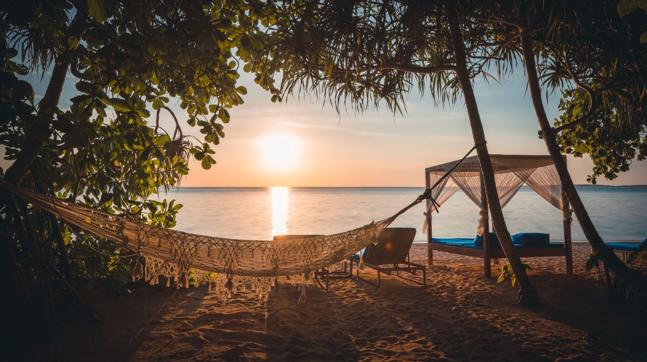 Lage: Am flach abfallenden Strand, im westlichen Teil der Insel gelegen (bei Ebbe ist das Baden im Meer nicht möglich). Zum kleinen Ort und dem Hauptsteg zum Hausriff nur wenige Gehminuten.