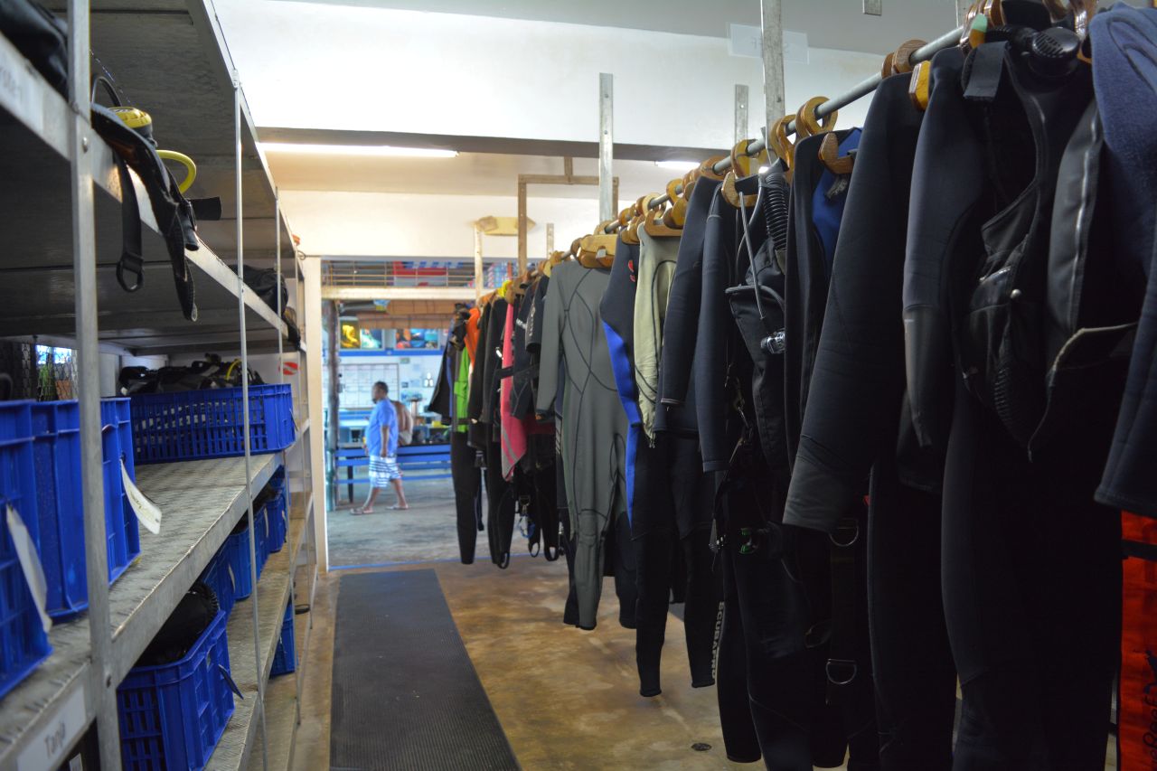 Ausrüstungsverleih: Gut gewartetes Markenequipment vorhanden. Komplettes Paket mit Jacket, Atemregler, Flossen, Tauchermaske, Schnorchel, Anzug und Computer circa US$ 45,- pro Tag.